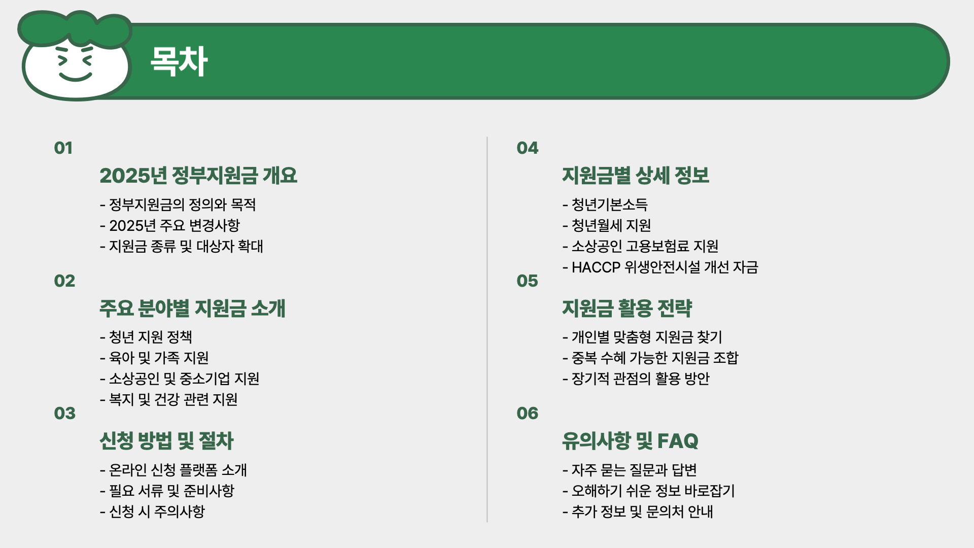 2025년 주요 정부지원금 한눈에 보기