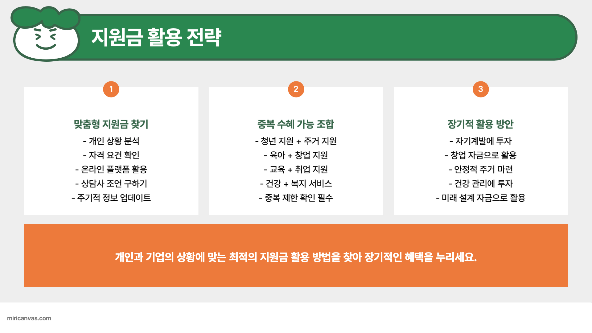 - 신청 마감일 체크: 일부 지원금은 조기 마감될 수 있음
