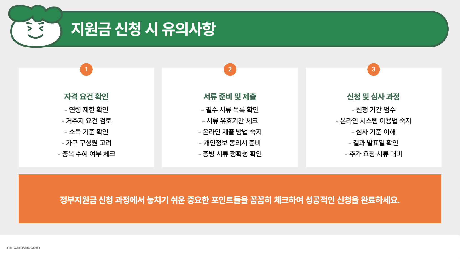 정부지원금 신청 시 유의사항